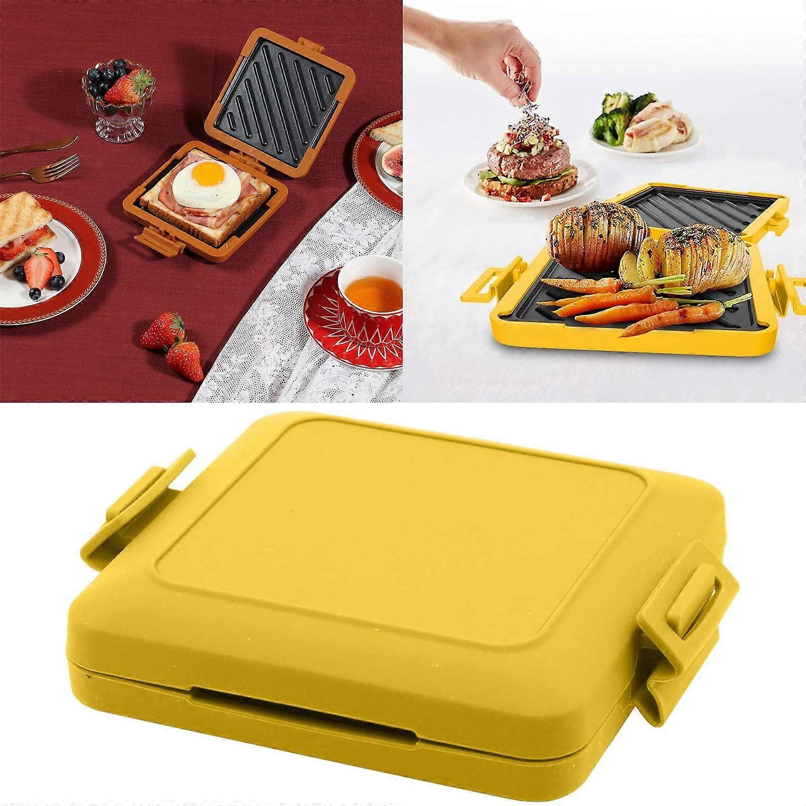 Wmhsylg Bread Machine Microwave Toastie Maker, Munchy Sandwich Maker with Adjustable Silicone Straps, No Electricity, Wireless, Yellow