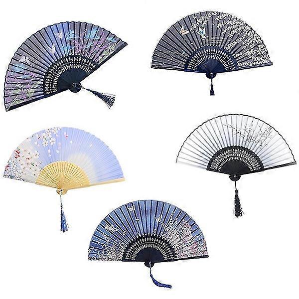 5pcs Women's Silk Folding Fans Delicate Unique Japanese Style Silk Fans Crafts Handmade Gifts