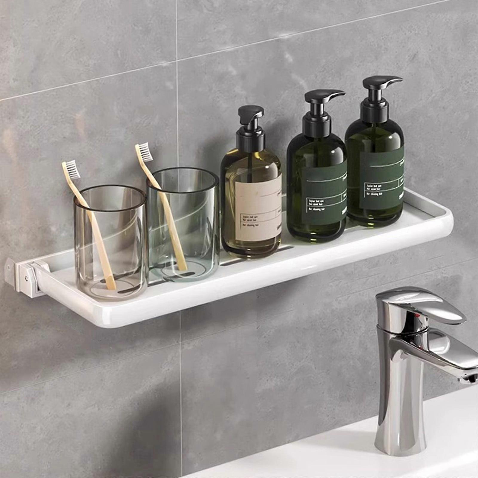 Lmueinov Foldable Toilet Storage Rack, Non-Perforated Hanging Washbasin Organizer with 40cm Long Shelf, No Drill Bathroom Storage Tool