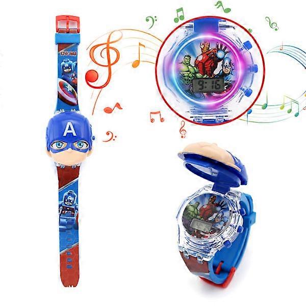 Children's Superhero Flip Music Watch Cartoon Luminous Belt Watch Captain America