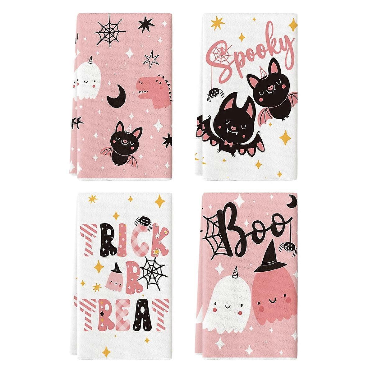 Sm:)e Pink Boo Spooky Ghost Halloween Kitchen Dish Towels 18 x 26 Inch Set of 4