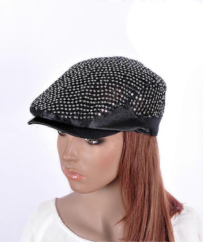Spring/Summer Shiny Sequins Mesh Lace Newsboy Golf Ivy Gatsby Cap Hat Black
