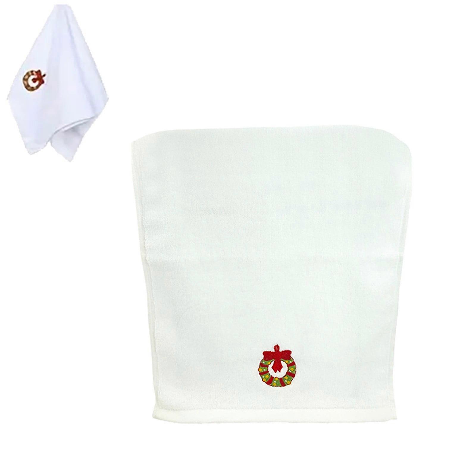 Christmas Decorative Hand Towel - Embroidered Santa, Reindeer, Snowman, Tree | Compatible with holiday kitchen & bathroom decor, White
