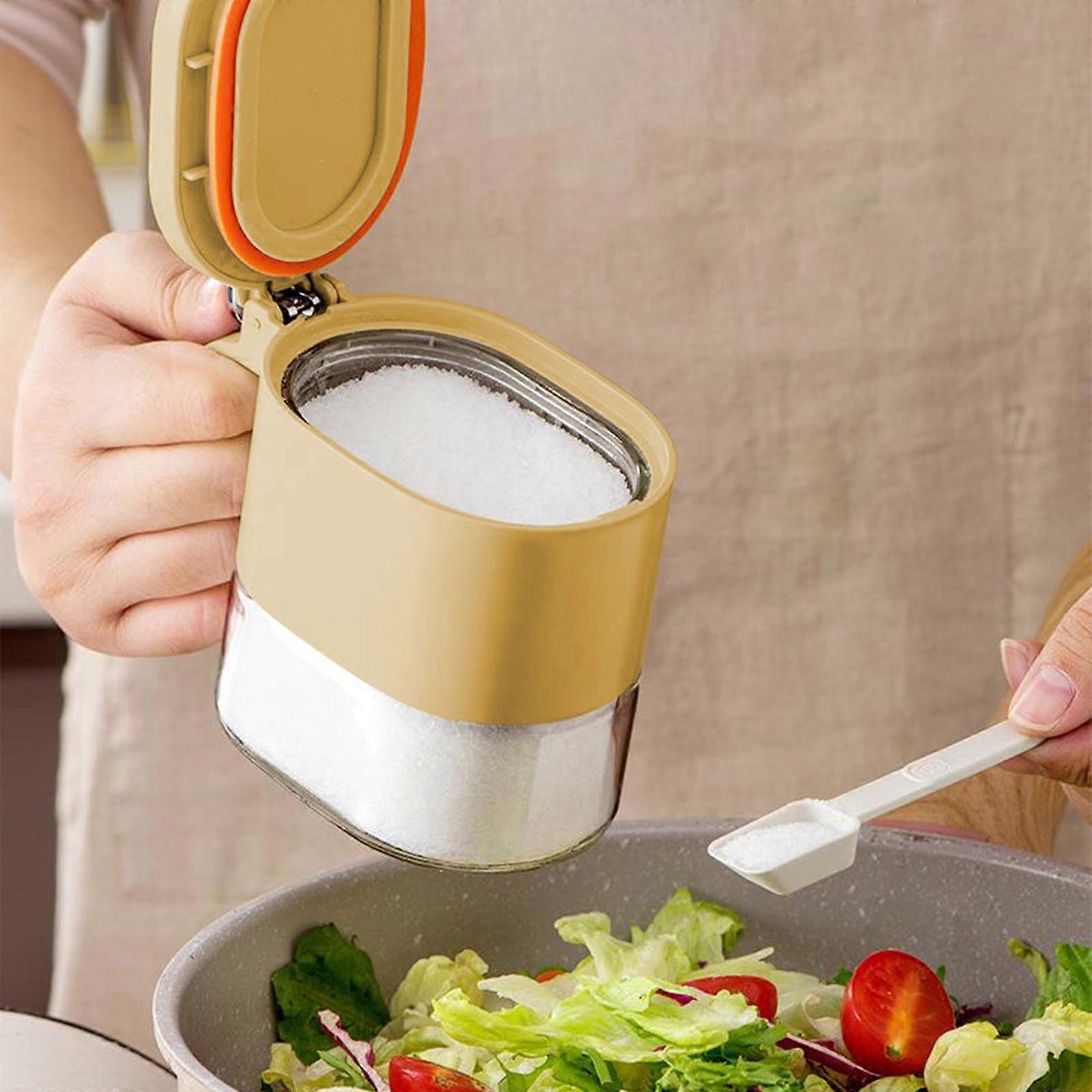 Quinlirra 380ml Glass Spice Jars with Flapper Caps, Seasoning Storage Bottles for Salt, Sugar, Chili - Kitchen Gifts for Women, Men