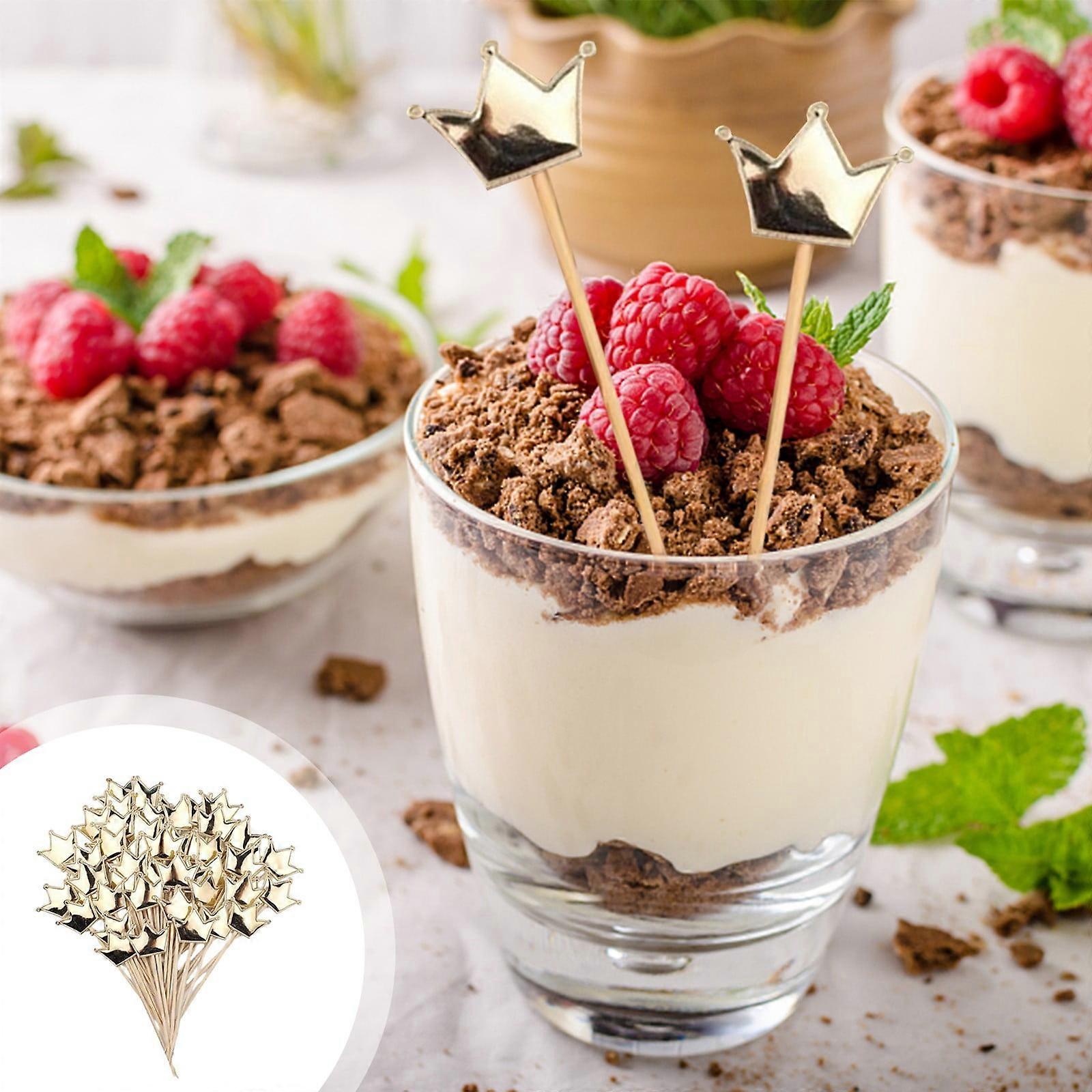 Cailmei 50 Pcs Crown Cocktail Picks - Wooden Toothpick Strings for Appetizers, Fruit & Drinks, Gold Party Decoration