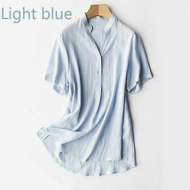 Lady Linen Cotton Short Sleeve Shirt Retro Tunic Blouse Sheer Thin Summer Top