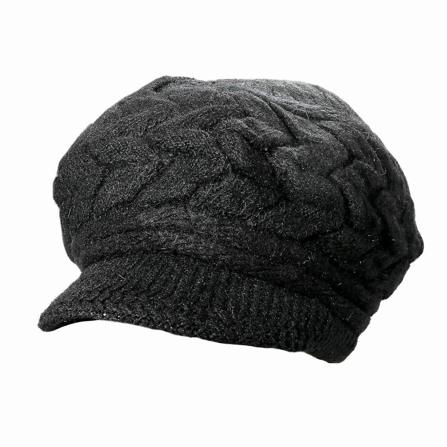 Women Winter Warm Knitted Hats Slouchy Wool Beanie Hat Cabbie Cap With Visor