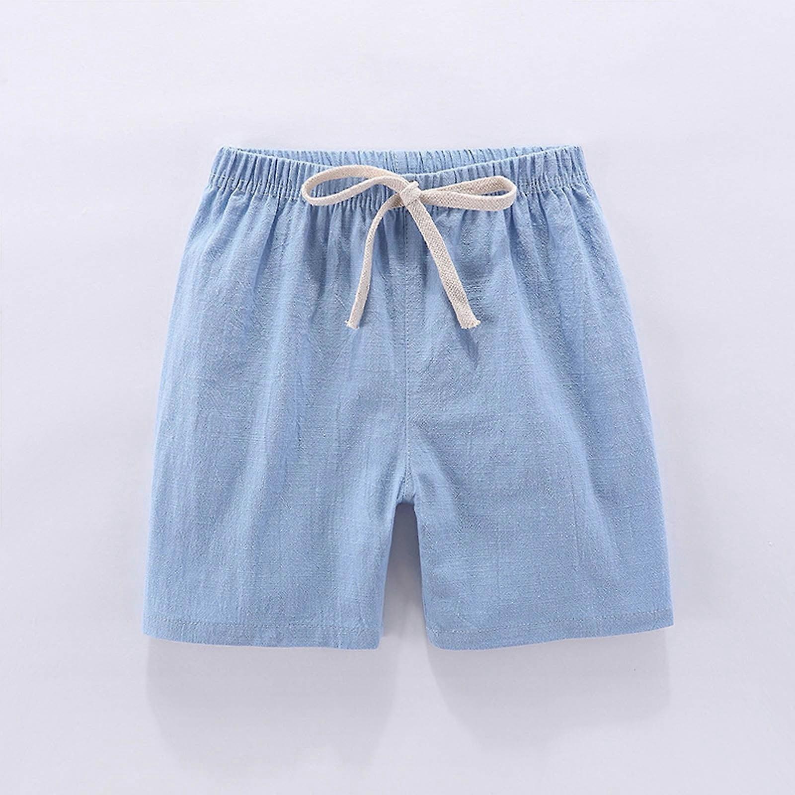 FAMTKT Toddler Boys Shorts Summer Cotton Casual Cute Solid Color Linen Pants Sports( 7-8 Years, Blue )