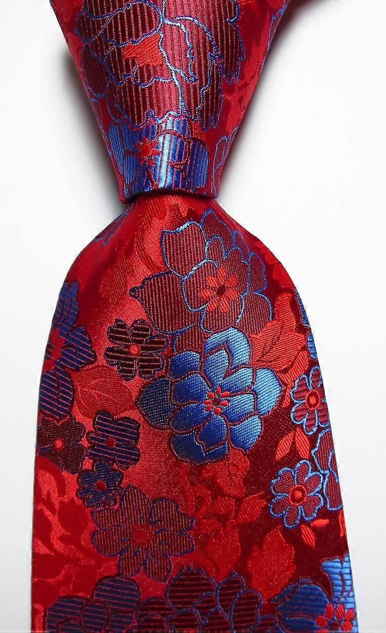New Classic Floral Red Blue JACQUARD WOVEN 100% Silk Men's Tie Necktie