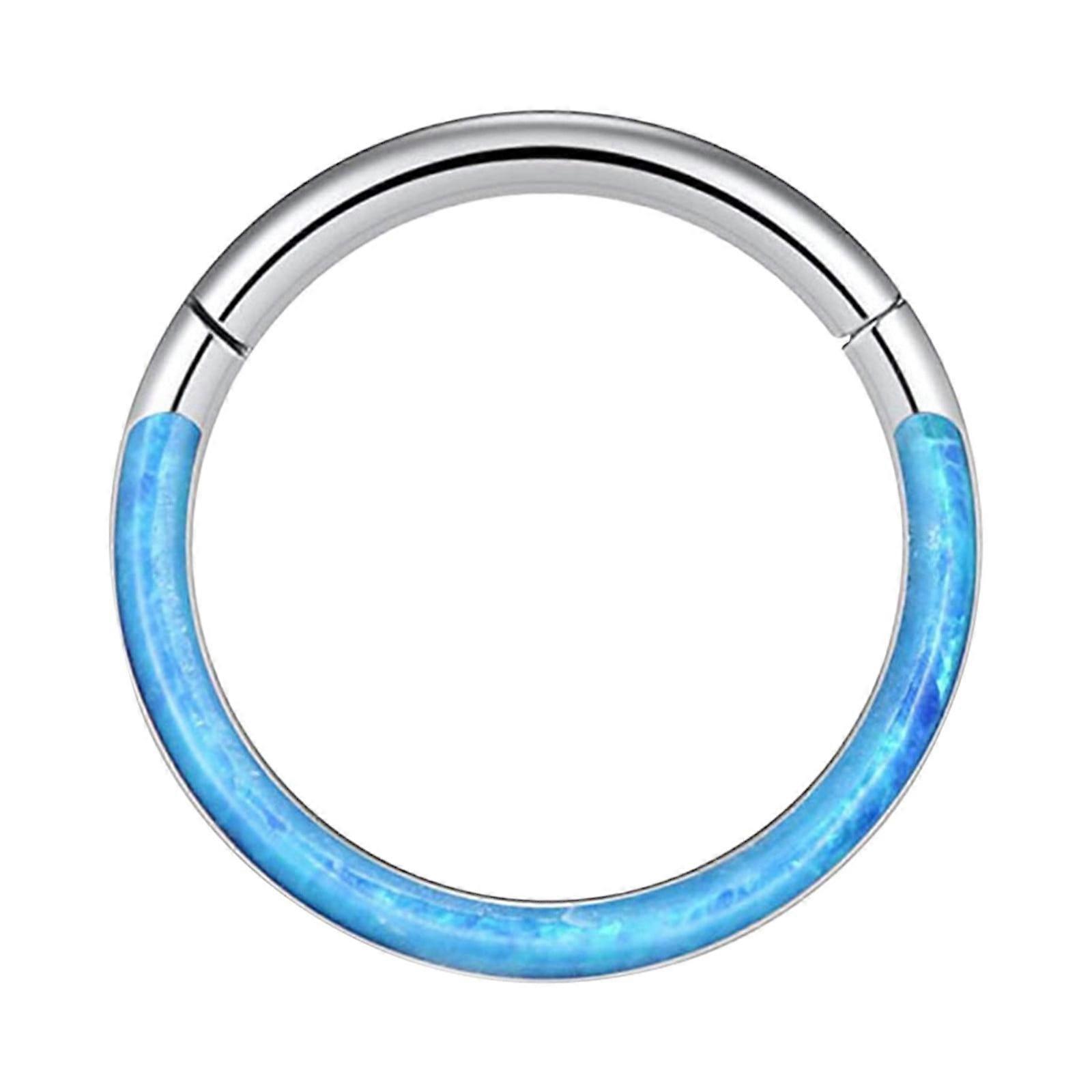 Miyuadkai 16G Opal Septum Rings, Stainless Steel Hinged Segment Hoop for Nose, Lip, Cartilage, Tragus Piercing Jewelry Silver3
