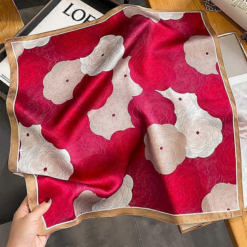 100% Mulberry Silk 20" Small Square Scarf For Women Neckerchief Wrap Red Flowers