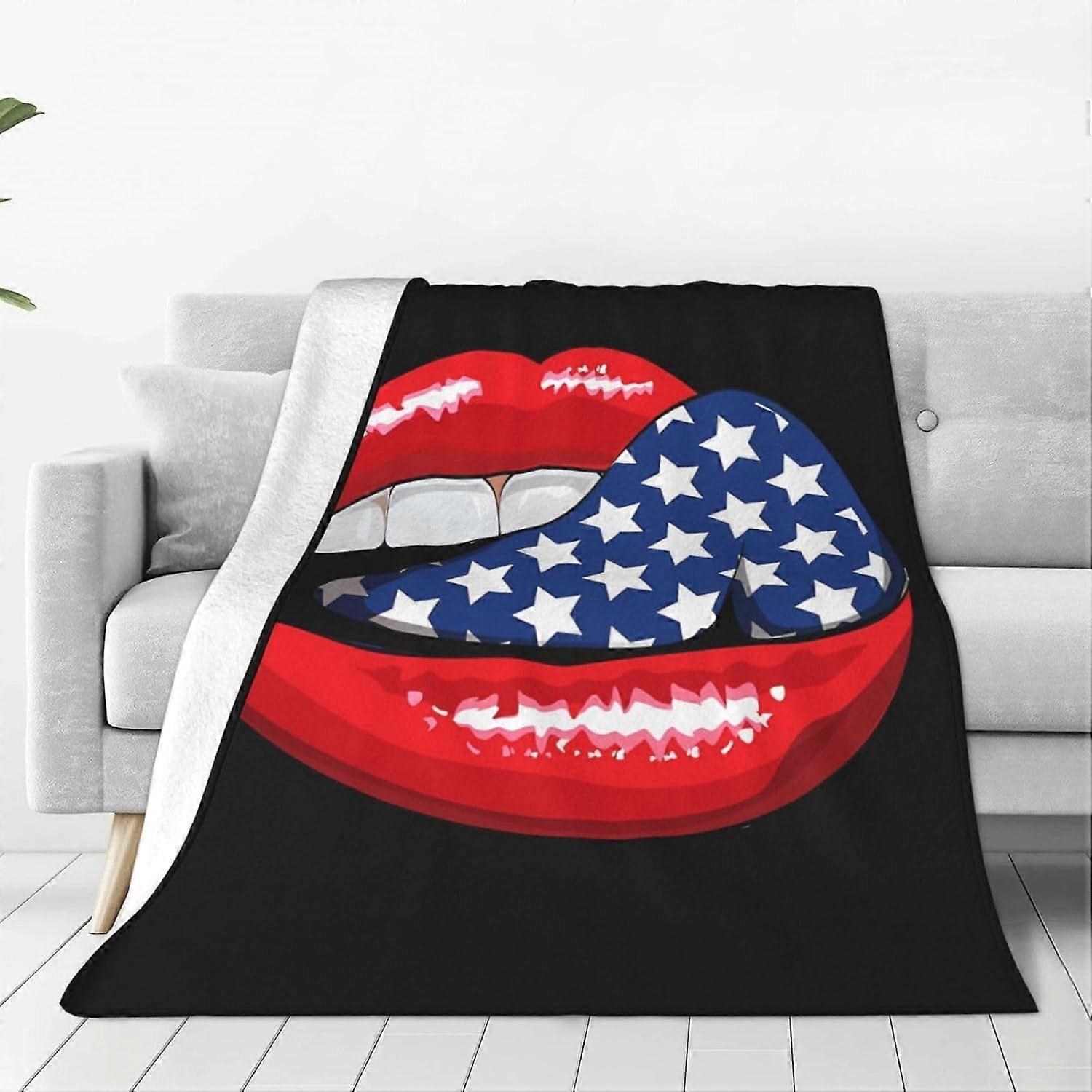 American Flag Tongue Lips Ultra-Soft Micro Flannel Blanket, 40"x30" Microfiber Throw for Bed, Couch, compatible with All Seasons