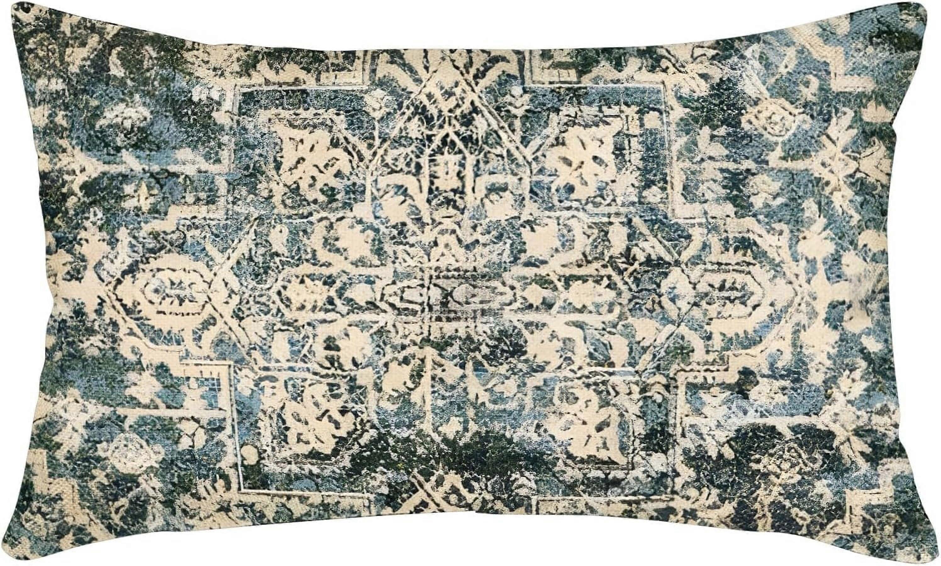 Boho Pillow Covers 12x20 Inch, Persian Carpet Green Vintage Throw Pillow Cover Antique Ethnic Decorative Linen Cases for Home Decor
