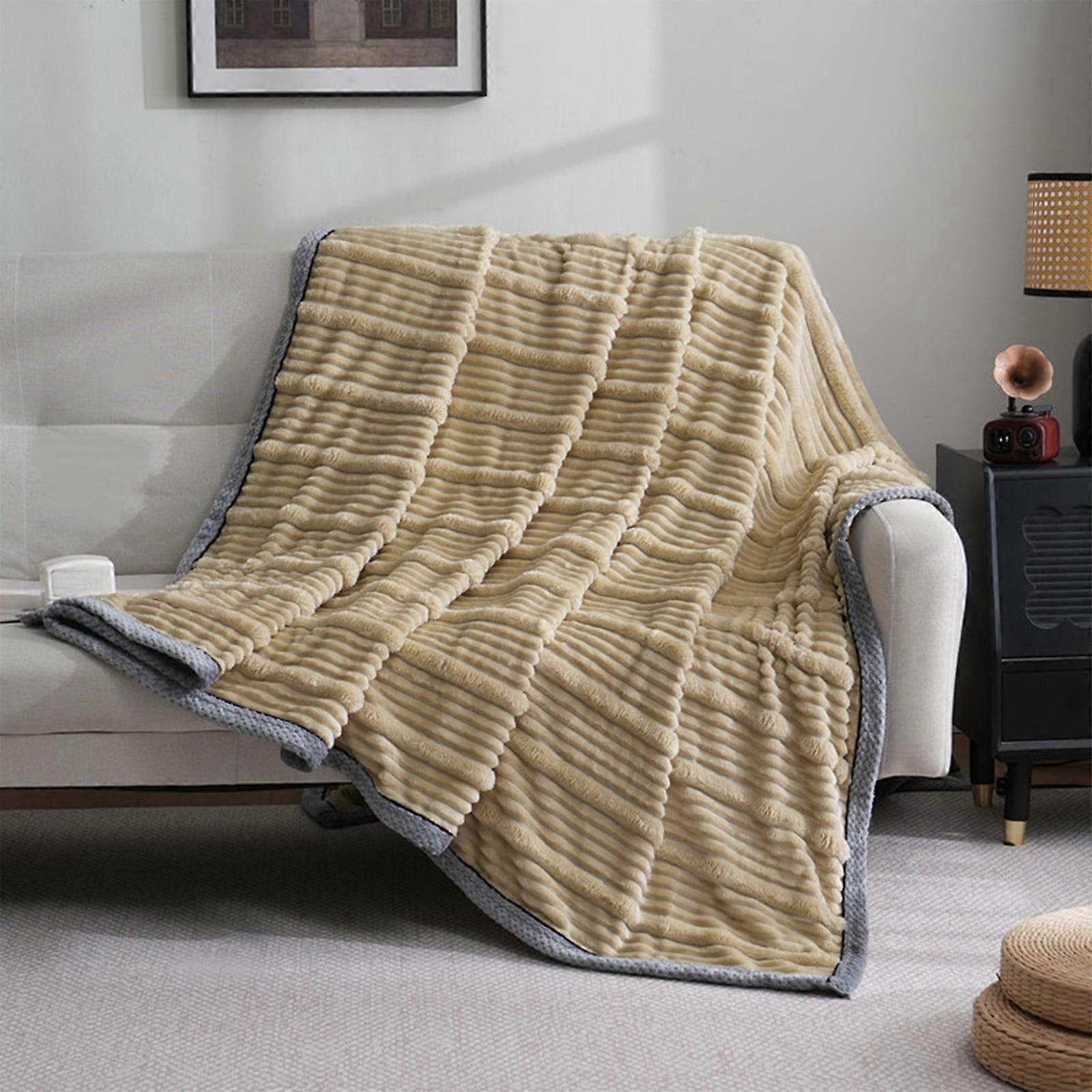 Lmueinov Super Soft Fleece Throw Blanket, Luxury Fuzzy Plush Flannel, Warm Cozy Ribbed Microfiber for Sofa Bed, Lightweight Striped Compatible with