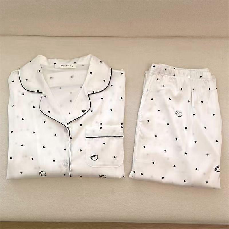 Style : basics<br>High-concerned chemical : None<br>Craft of Weaving : Non-Woven<br>Thickness : Thin<br>Model Number : 1123<br>Length : Ankle-Length Pants<br>Season : Autumn<br>Material Composition : Polyester<br>Collar : Turn-Down Collar<br>Sleeve Length(cm) : Full<br>Pattern Type : Cartoon<br>Material : POLYESTER<br>Brand Name : Sanrio<br>Gender : Women<br>Origin : Mainland China<br>CN : Guangdong<br>Item Type : PAJAMAS<br>ACG : Sanrio<br>Style : Cartoon<br>Product Category : Pajama set<br>Material : Polyester<br>Sleeve length : Long-sleeved<br>Pants length : long Pants<br>Collar style : lapel<br>Feature 1 : autumn<br>Feature 2 : Wearable as outerwear<br>