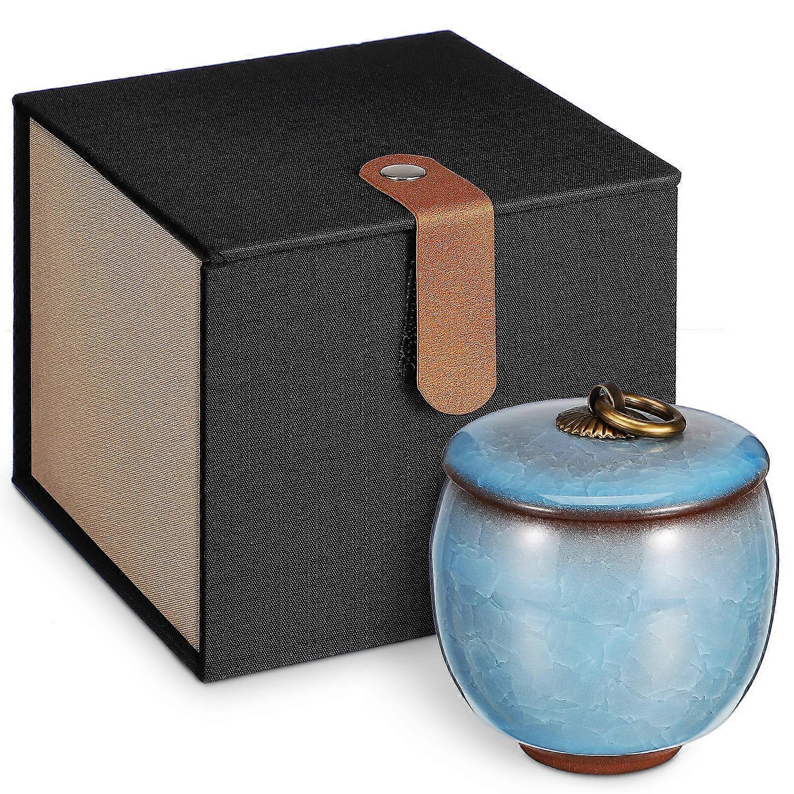 Introducing our Small Pet Urn, a great resting place for your pet's ashes. Made from ceramic material, this urn is built to last and simple to clean. The unique ice crackle glaze technique gives it a beautiful and elegant appearance. The tight seal ensures that the ashes or items are well-protected and preserved. Features -Capacity: 70ml -Color:Sky-blue -Material:Ceramic -Size:6.50X6.50X6.50 cm/2.55X2.55X2.55in -Note:the box color and style is random - Thoughtful Memorial: This beautifully crafted urn serves as a thoughtful and respectful way to remember and honor your pet - Compact Size: The compact size of urn for dog ashes which makes it easy to place in any room, providing a discreet yet meaningful memorial - Fine Craftsmanship: The small pet urn is made with meticulous craftsmanship, ensuring that it is not only functional but also a beautiful piece - Easy Maintenance: The ceramic small urn is not only strong but also simple to clean, making it simple to maintain its great condition - Versatile Use: This small urn for ashes can be used for various purposes, storing pet ashes, keepsakes, or other small mementos Package list: 1 x small urn