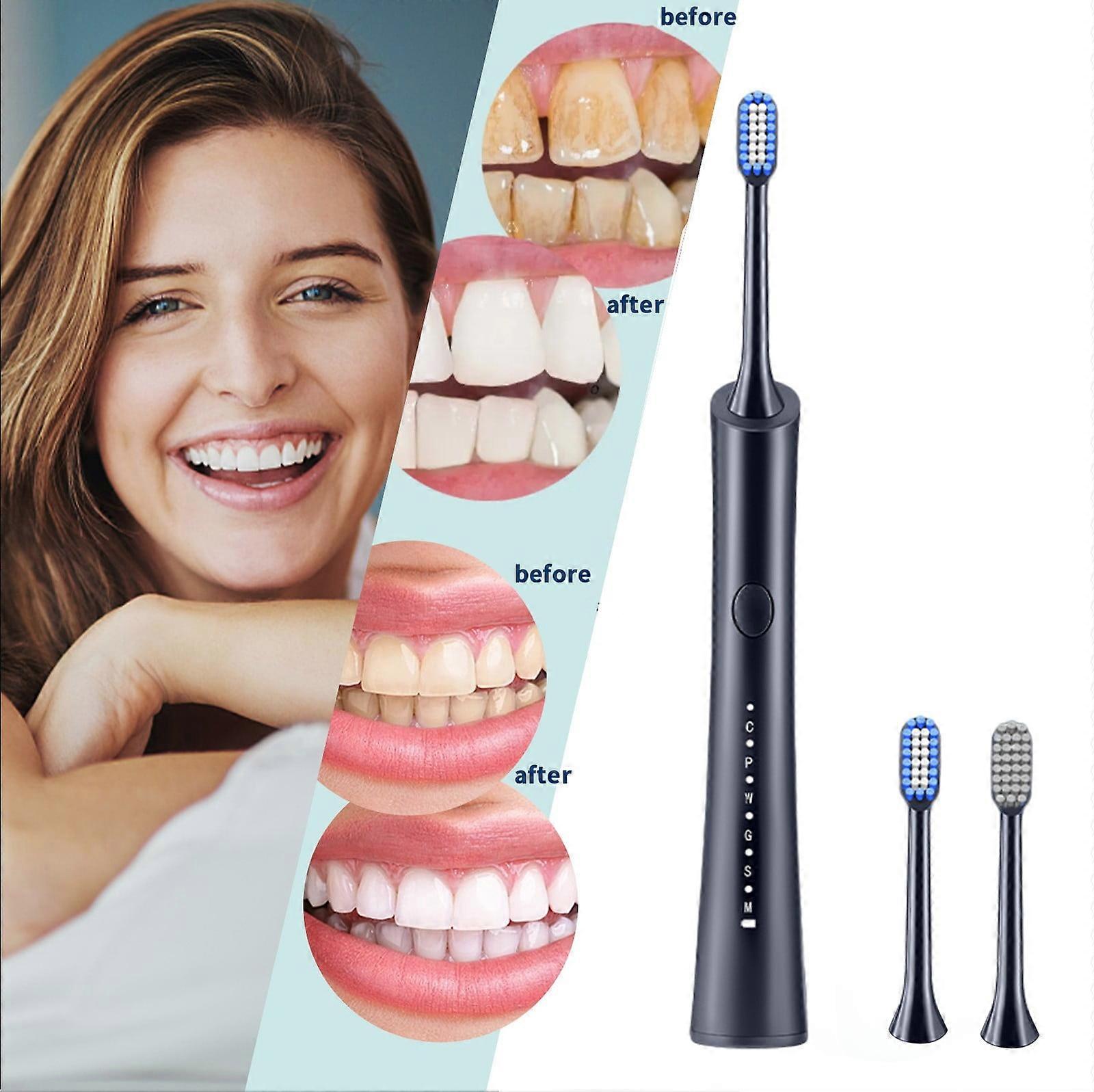 Electric Toothbrush - 3-head Electric Toothbrush Including Two Cleaning Brush Heads Intelligent 6-speed Timed Electric Toothbrush IPX7 Specification: Quantity: 1pc. Material: ABS. Color: Black Charging socket type:USB Frequency: 32000 times/min grade: IPX7 Charging time: 4-6 hours Toothbrush voltage/power: 3.7V /1w Product size:25.2x3.1x3.1cm(9.8x1.2x1.2in). Packing size:19.5x9.5x3.5cm(7.7x3.7x1.4in). Product net weight:0.08kg/0.18lb. Product gross weight:0.125kg/0.27lb. Feature: 【Deeply Clean Teeth and Removes up to 5X More Stains 】Electric toothbrush delivers 42,000 strokes per minute, removing up to 5X more stains vs. a manual toothbrush. gently pulses fluid between the teeth and along the line for a gentle and effective clean every time. 【6 Modes for Different Teeth and Conditions】The electric toothbrush has 6 modes, suitable for adults. mode, mode,mode, mode, , relieve tooth bleeding. 【3 Replaccement Heads for over 2 Years Using】The soft, bristles are designed to suit teeth topography and up to more stains from spots. Interdental brush can go deep into the teeth and ideal for cleaning between braces, crowns, and implants. 【8 Hours Charging for 15 Days Using】Electronic toothbrush run for more than 15 days with 8 hour charge. USB cable 5V 1A Adapter (Adapter is not included in the package) or applicable to a USB port, such as phone, power bank and so on. Great for carrying and traveling. 【IPX7 Rechargeable toothbrush with IPX7 rated design, so the entire toothbrush can be safely rinsed with water and user can safely use toothbrush in the bath or shower. Package Contents: 1x brush handle 3x brush 1x Usb line 1x Manual Conjunctive word:kids toothbrush;toothbrush soft;electric toothbrush;electric toothbrush for kids;toothbrush;toothbrush holders;electric toothbrush for adults;kids toothbrush;travel toothbrush;kids electric toothbrush;toothbrush heads;electric toothbrush kids;toothbrush electric; Electric Toothbrush - 3-head Electric Toothbrush Including Two Cleaning Brush Heads Intelligent 6-speed Timed Electric Toothbrush IPX7 Sparkle with our high-tech electric toothbrush for a brighter smile and effortless oral care Revolutionize your routine with precision and comfort – our advanced electric toothbrush delivers superior results Embrace cleanliness and convenience with our innovative electric toothbrush, ensuring a fresh and dazzling dental experience Electric toothbrush