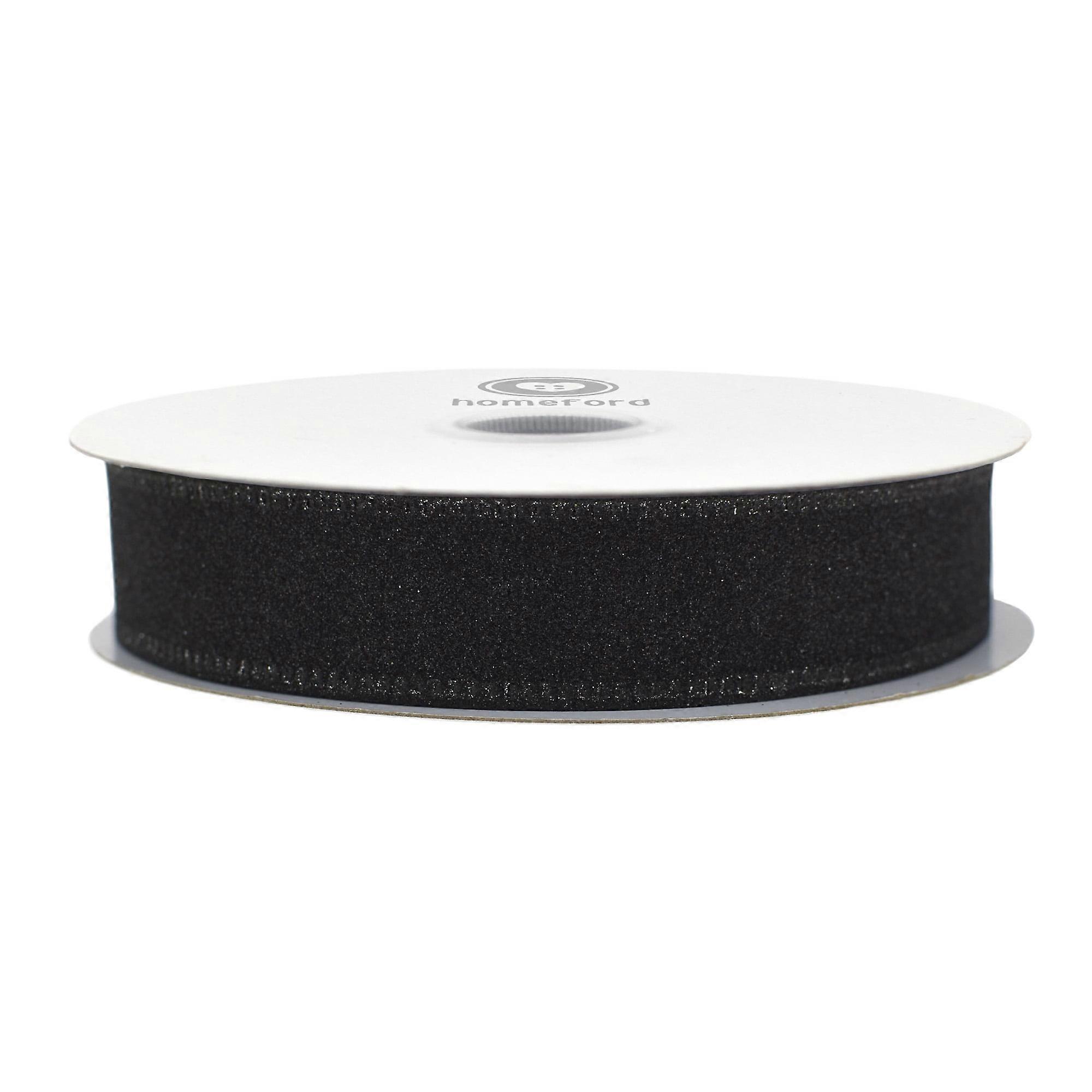 HOMEFORD Christmas Flat Glitter Wired Ribbon, 7/8-inch, 10-yard, Black