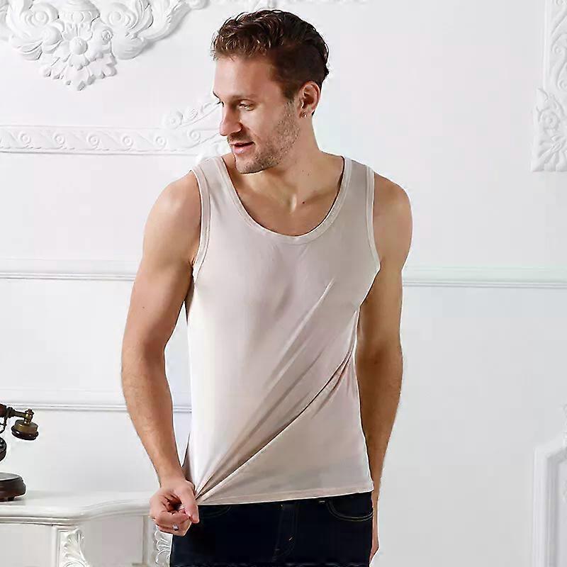 Men 100% Pure Silk Tank Top Vest Sleeveless Knitted Leisure Crew Neck Soft