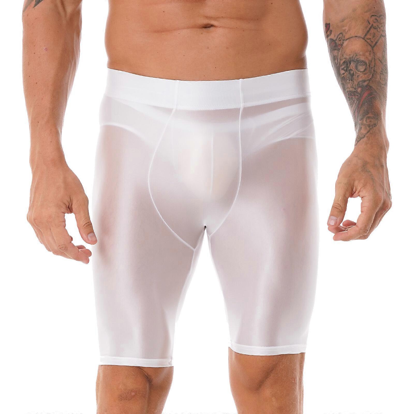 Mens See through Glossy Sports Shorts Gym Running Compression Tights Swim Trunks