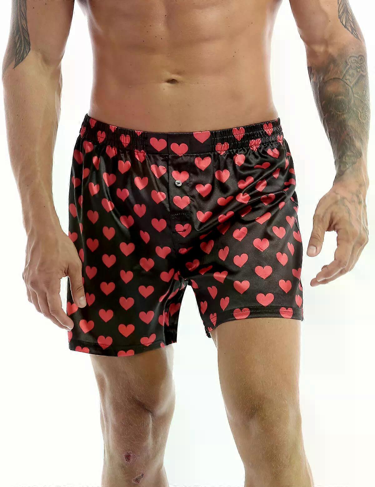 Mens Satin Love Heart /Lip Print Boxer Shorts Sleep Shorts Underwear