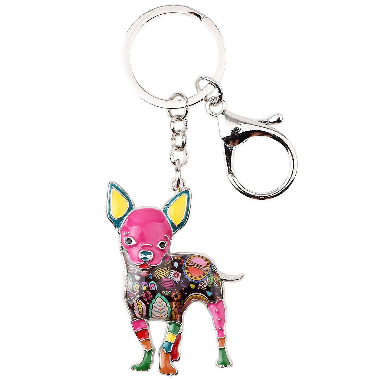 Enamel Alloy Chihuahua Dog Keychains Car Bag Key Ring Pets Jewelry Charms Gifts