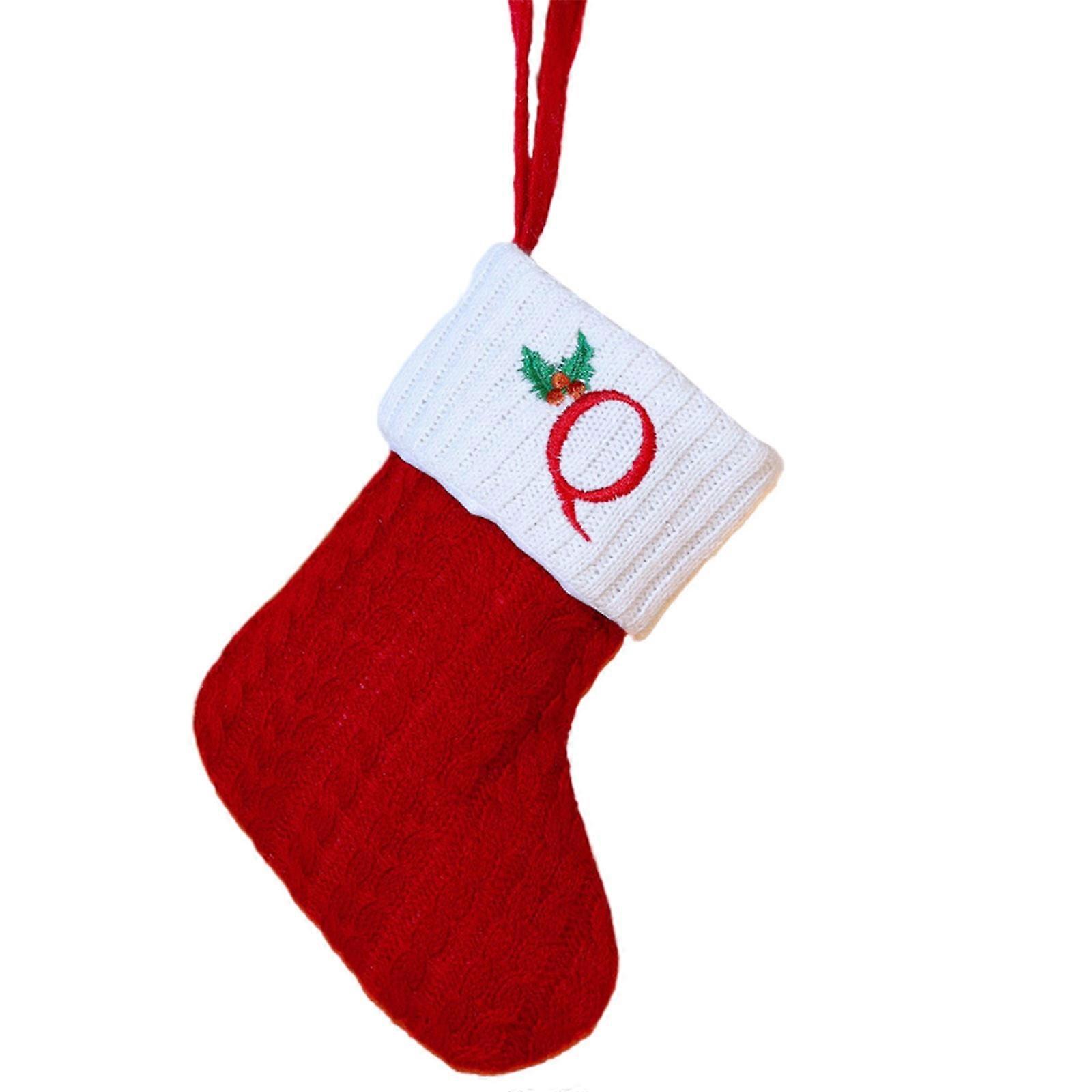 Summercome Christmas Stocking with Initial Q, 7.9" Red & White Knit Embroidered Letter for Holiday Decor, compatible with Xmas Tree & Fireplace