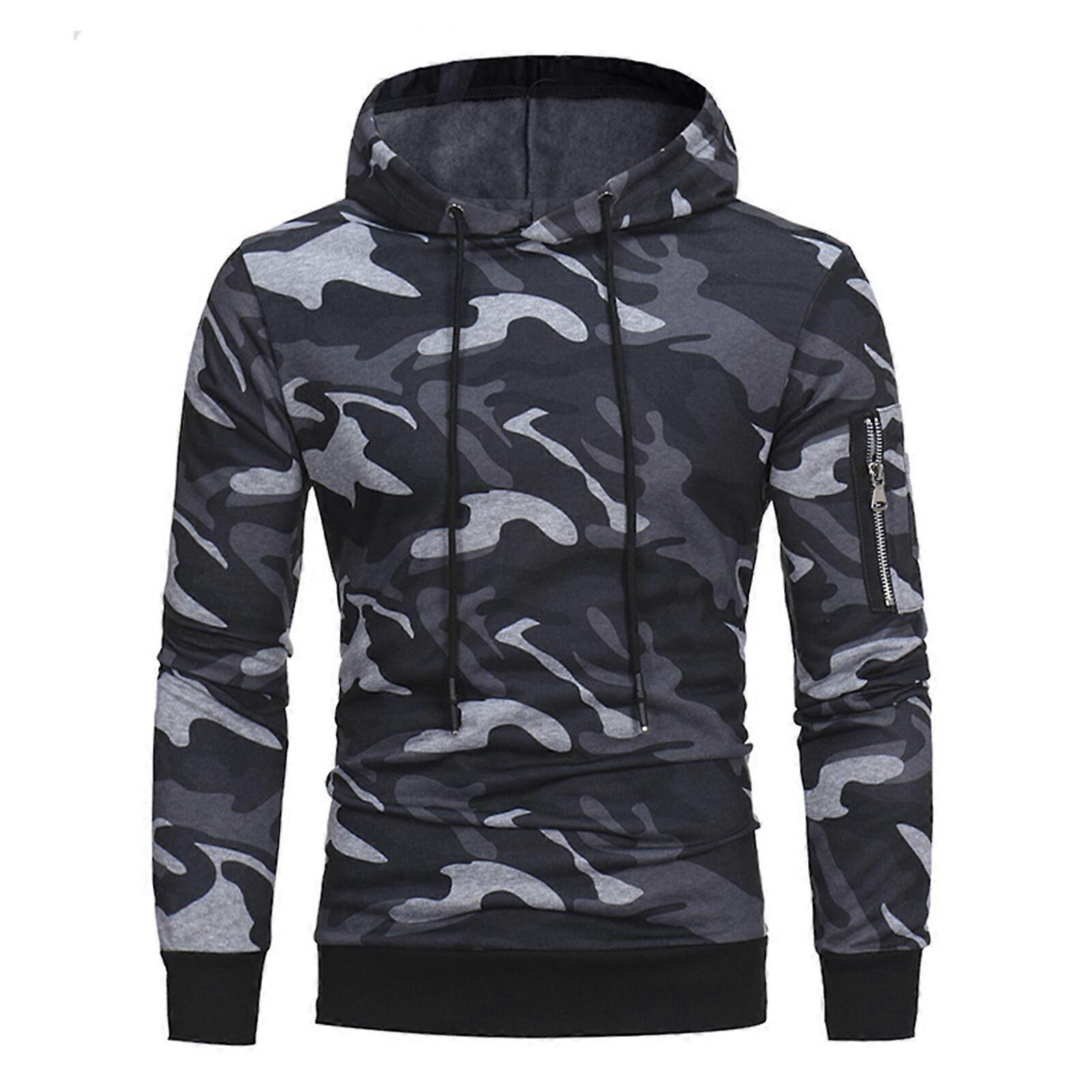 Mens Camouflage print Hooded Sweatshirt Drawstring Hoodie Long Sleeve Hoodies