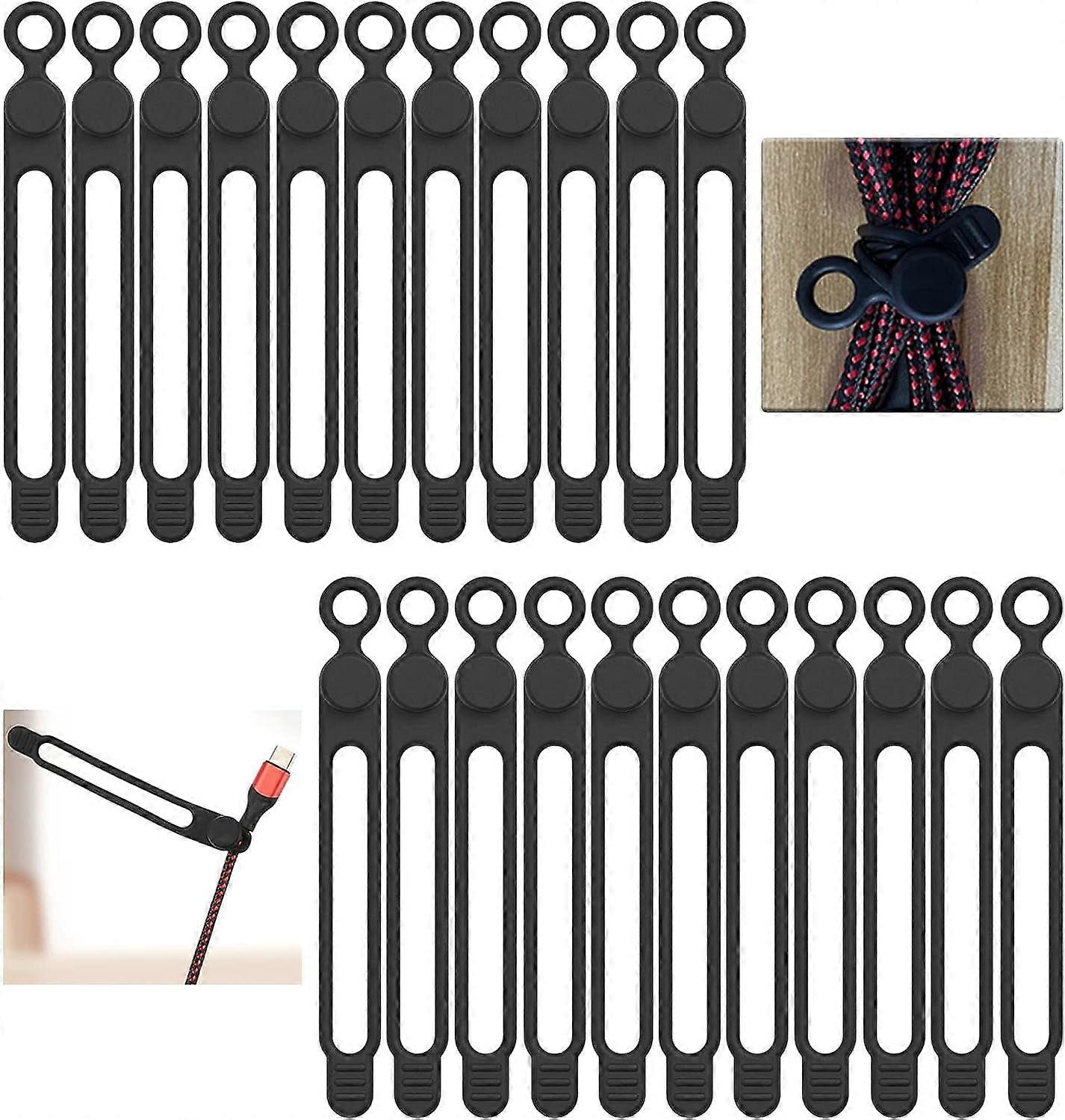 Silicone Cable Ties 22pcs, Reusable Cord Organizer, Elastic Cable Management Clips for Office, Home, Car (Black) compatible with various devices