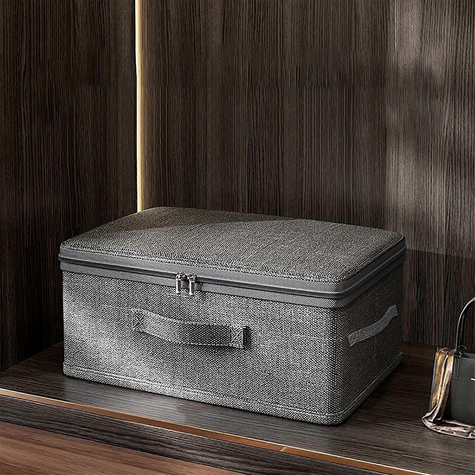 Loyerfyivos Storage Bins with Zipper Lid, Velvet Fabric, Foldable & Washable, with PU Leather Handles (M) - Compatible with Loyerfyivos