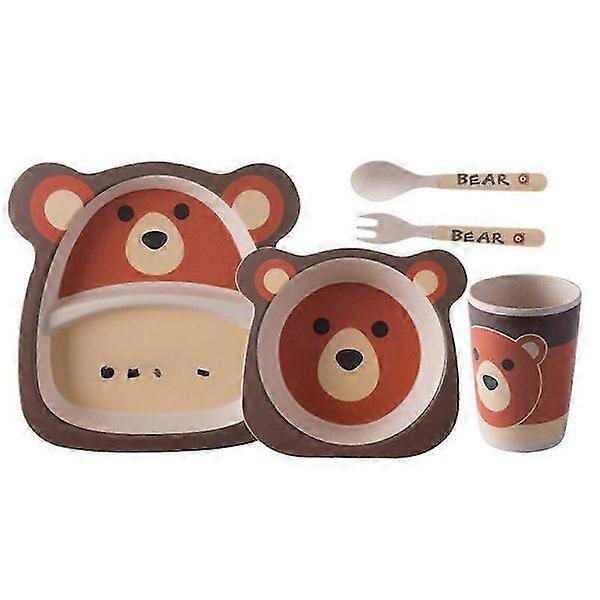 Creative New Bamboo Fiber Children's Dinnerware Set Five Piece Set Preschool Baby Brown.bear.ears Five.piece.set.with.box
