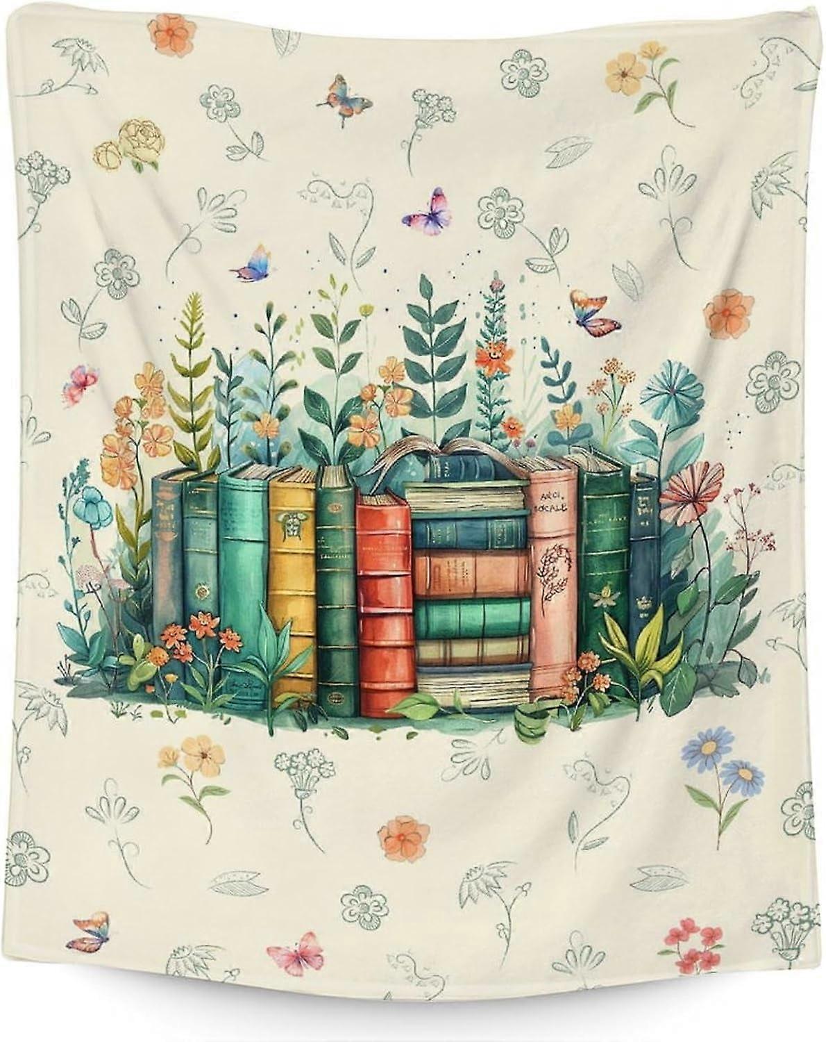 Books Blanket Gifts for Book Lovers - Vintage 60x80" Reading Throw Compatible with Library Decor - Soft Fuzzy Couch Sofa Bed Comforter