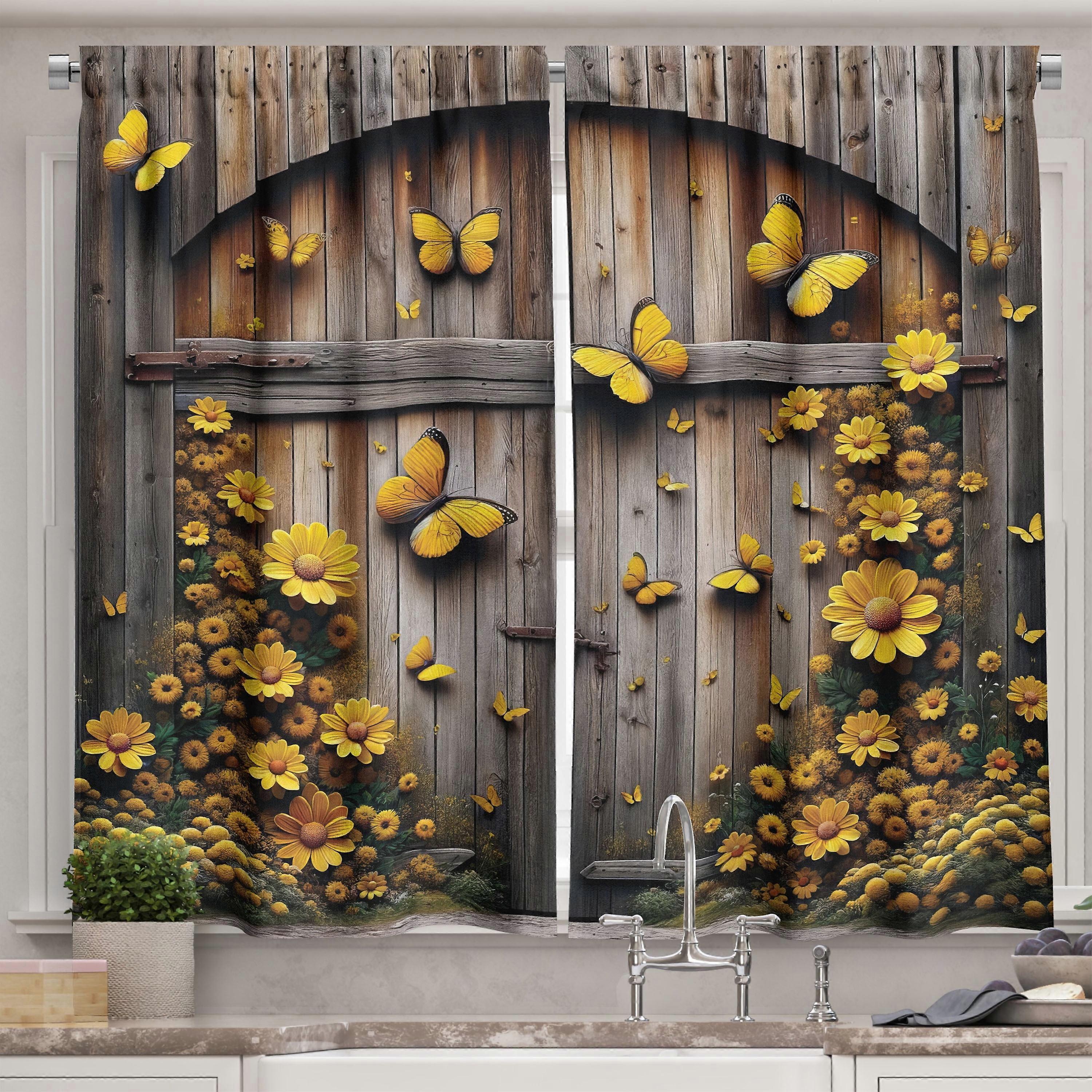Ambesonne Rustic Kitchen Curtains, Yellow Farmhouse Romance, 55"x24", Mustard Taupe Caramel