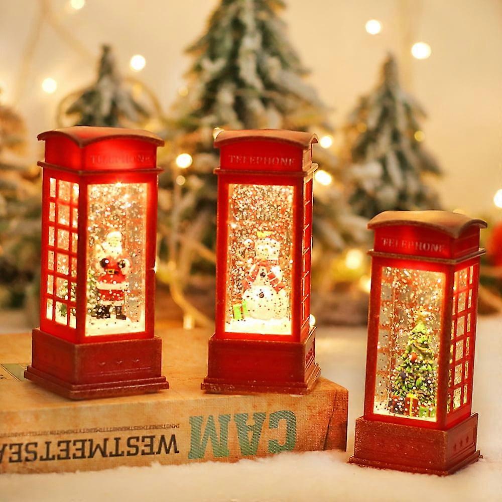 Snow Globe London Phone Booth Christmas Music Box, compatible with xmas decor, battery operated, glittering water ornament