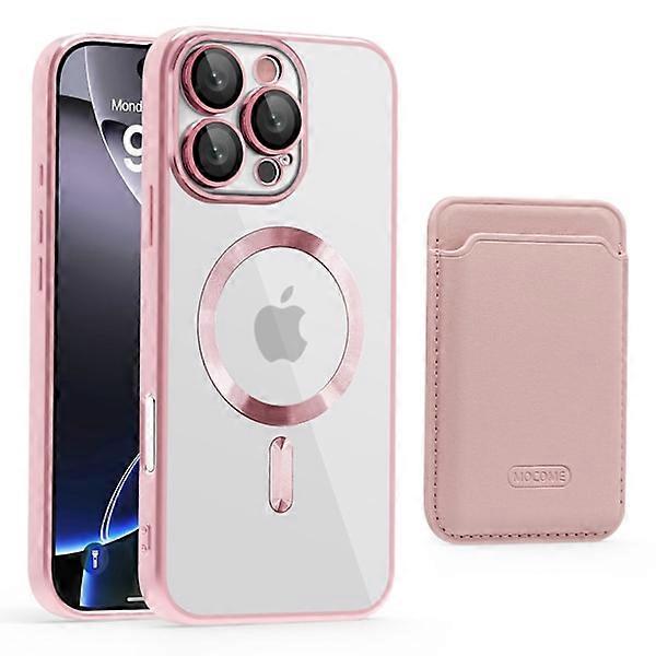 HONGDE Compatible with Apple Series CD Pattern Transparent Magnetic Card Holder & Compatible with iPhone Series Case Pink for iPhone16plus