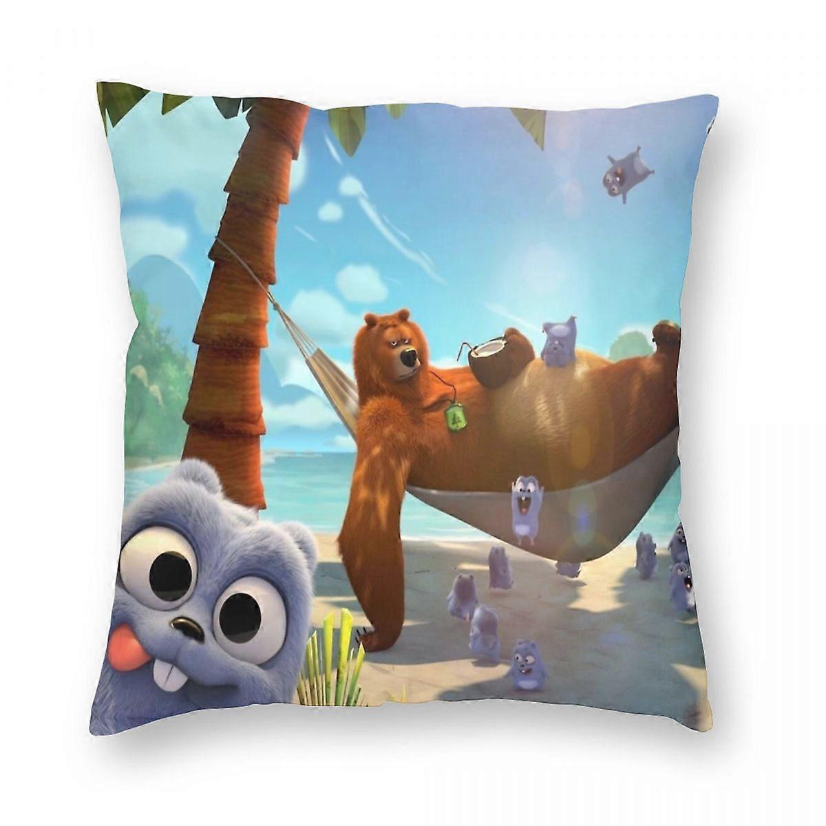 Grizzy And The Lemmings Holiday Pillowcase Polyester Linen Velvet Printed Zip Decor Throw Pillow Case Bed Cushion Cover 45x45