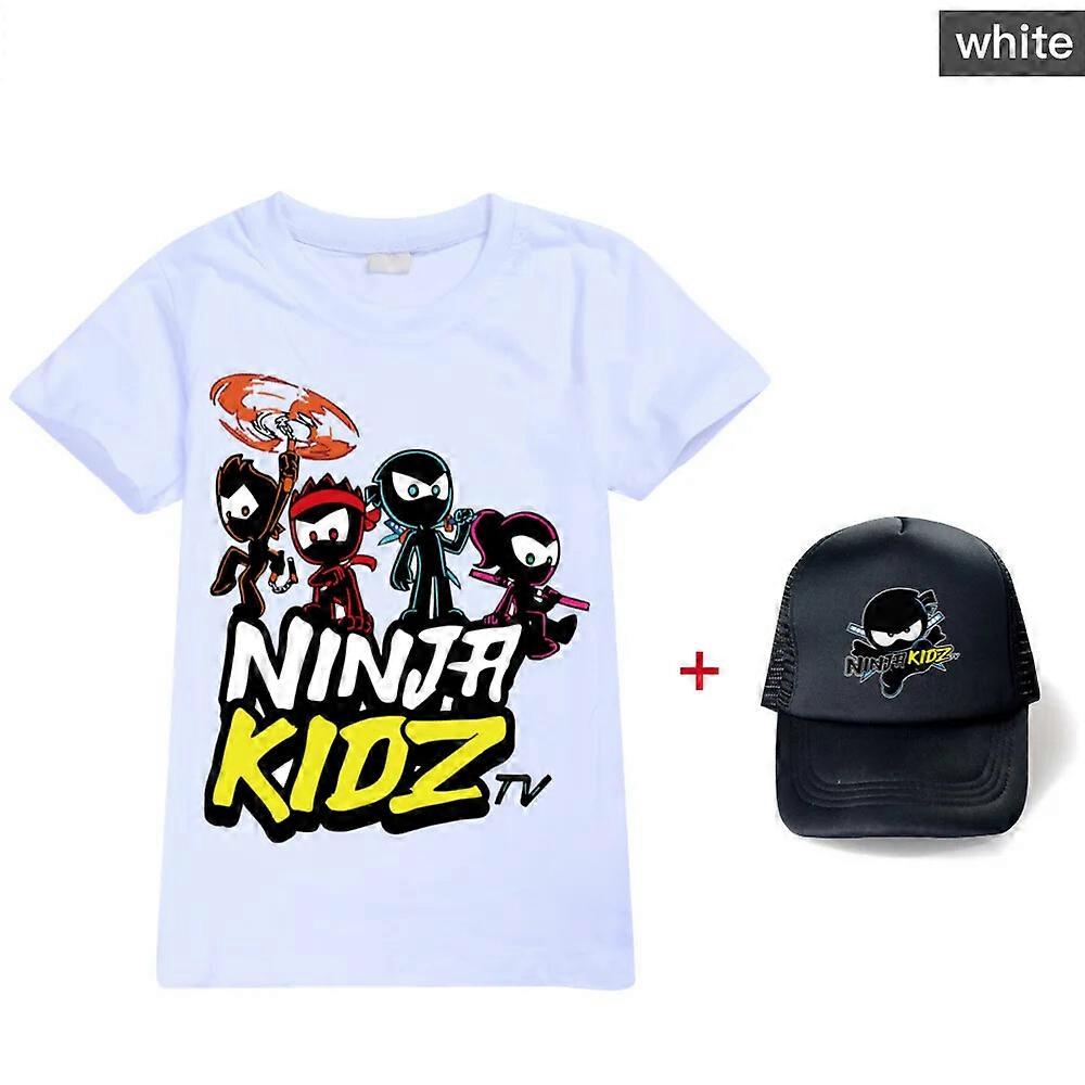 Summer Baby Boys Ninja Kidz T-Shirt Cartoon Short-Sleeved Girls T-Shirt +hat