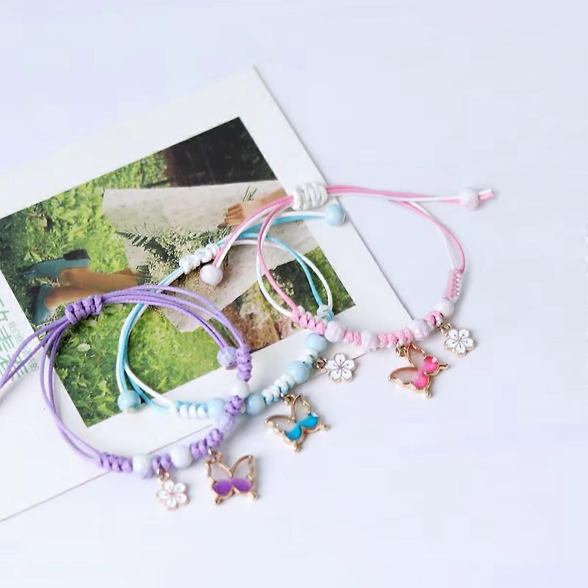 Bohemian Butterfly Flower Bracelets For Women Girls Handmade Purple Blue Pink Beads Braided Rope Chain Bracelet Bangles BFF Gift