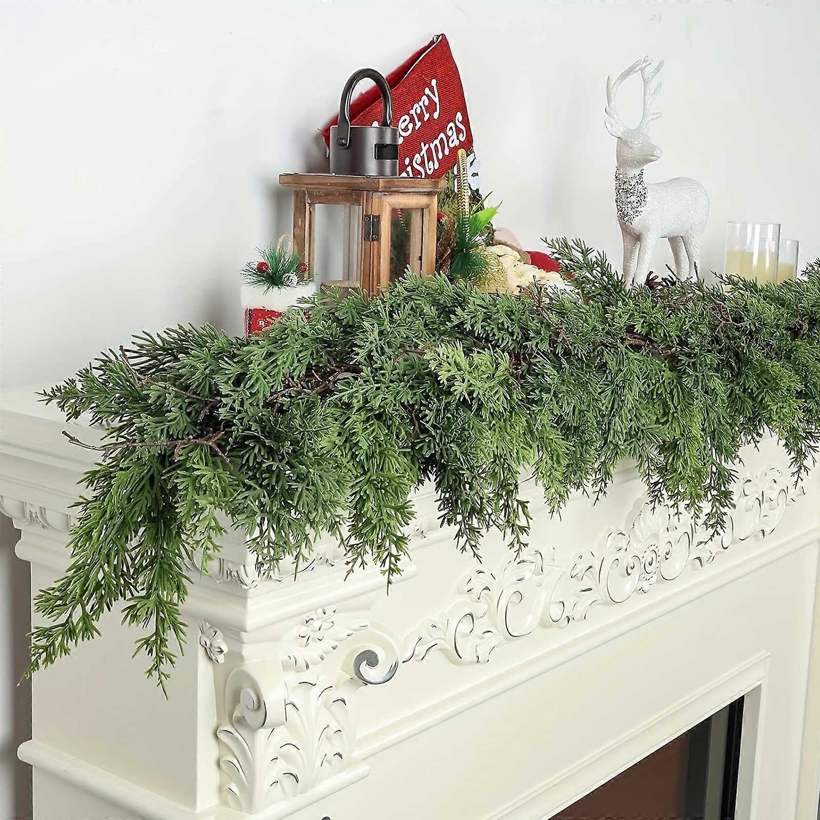 Christmas Artificial Cedar Garland - 5.9Ft Faux Green Cedar Branches for Home, Fireplace, Indoor, Outdoor Holiday Party Decoration