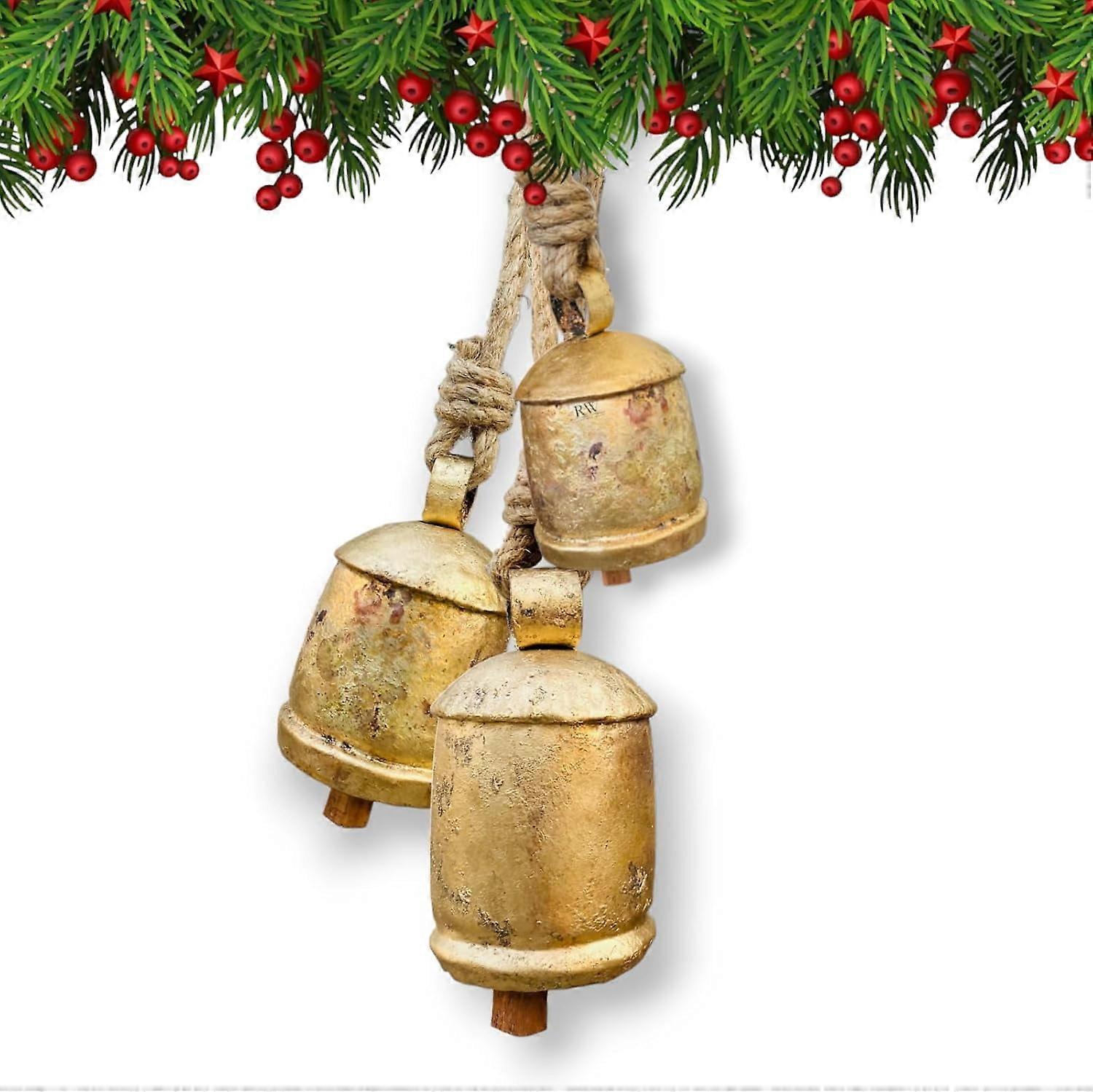 Fuebueo Decorative Cow Bells with Jute Rope, Compatible with Door & Knob Hanging, Christmas Ornaments for Home Festival Décor