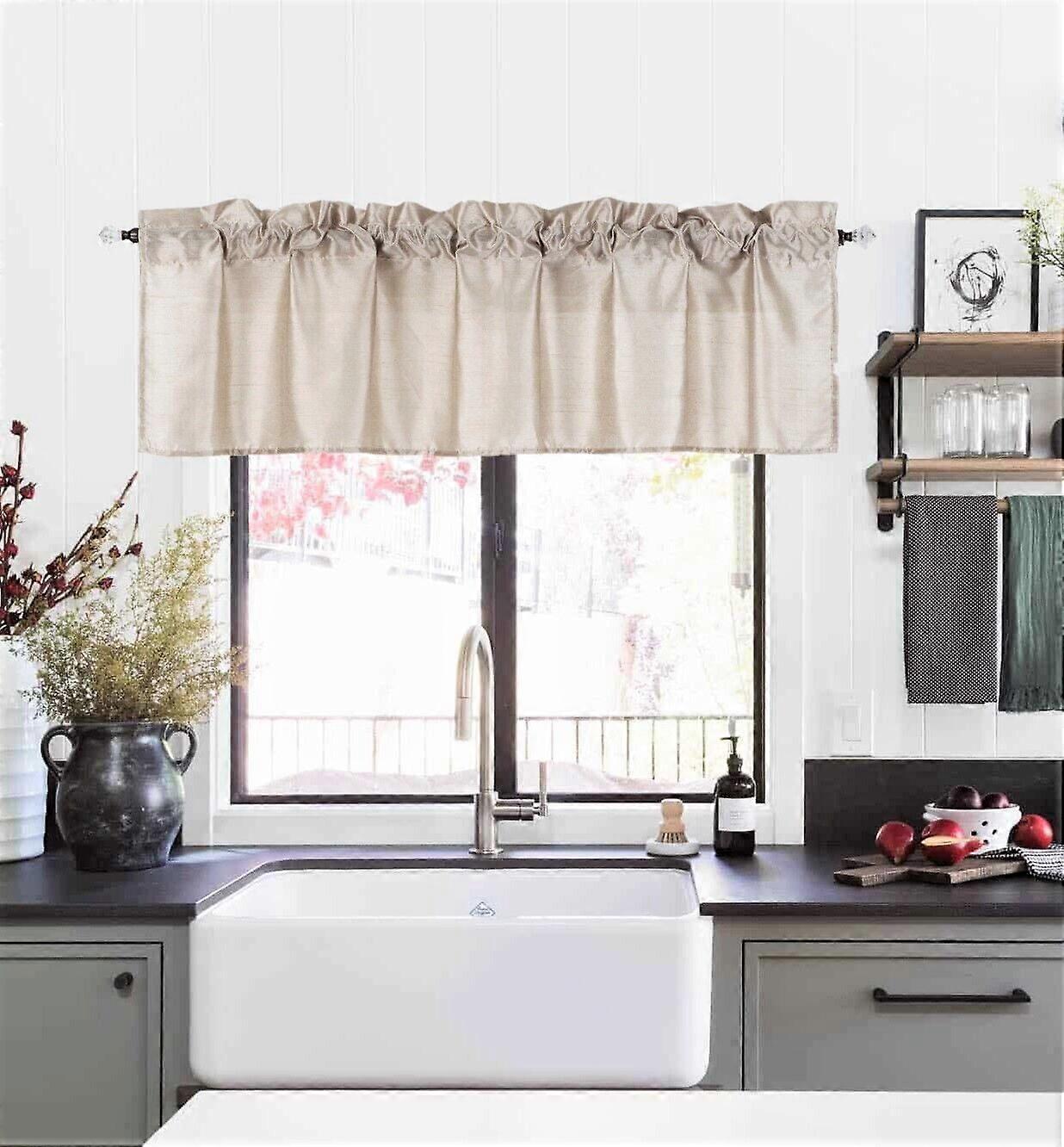 1 piece S18 luxury straight sheer faux silk window curtain valance for kitchen bathroom décor with rod pocket taupe color 55" wide X 18" long