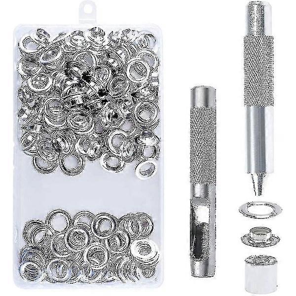 100pcs Eyelet Set 14mm Grommet Kit Eyelet Tool Metal Grommet Eyelet Kit With Eyelet Tool For Canvas Tarpaulin Tent Repair Silver-AM