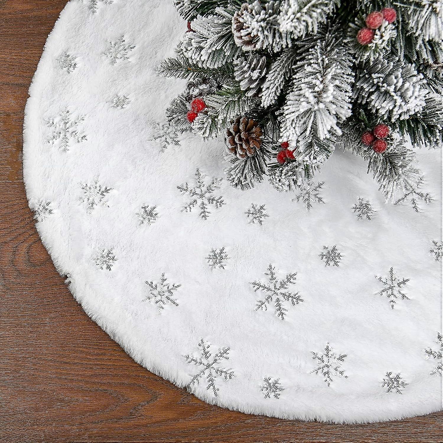 Ayieyill Christmas Tree Skirt, 48 Inches Faux Fur White Christmas Tree Skirt for Christmas Tree Decorations Xmas Tree Skirt (Snowflake)