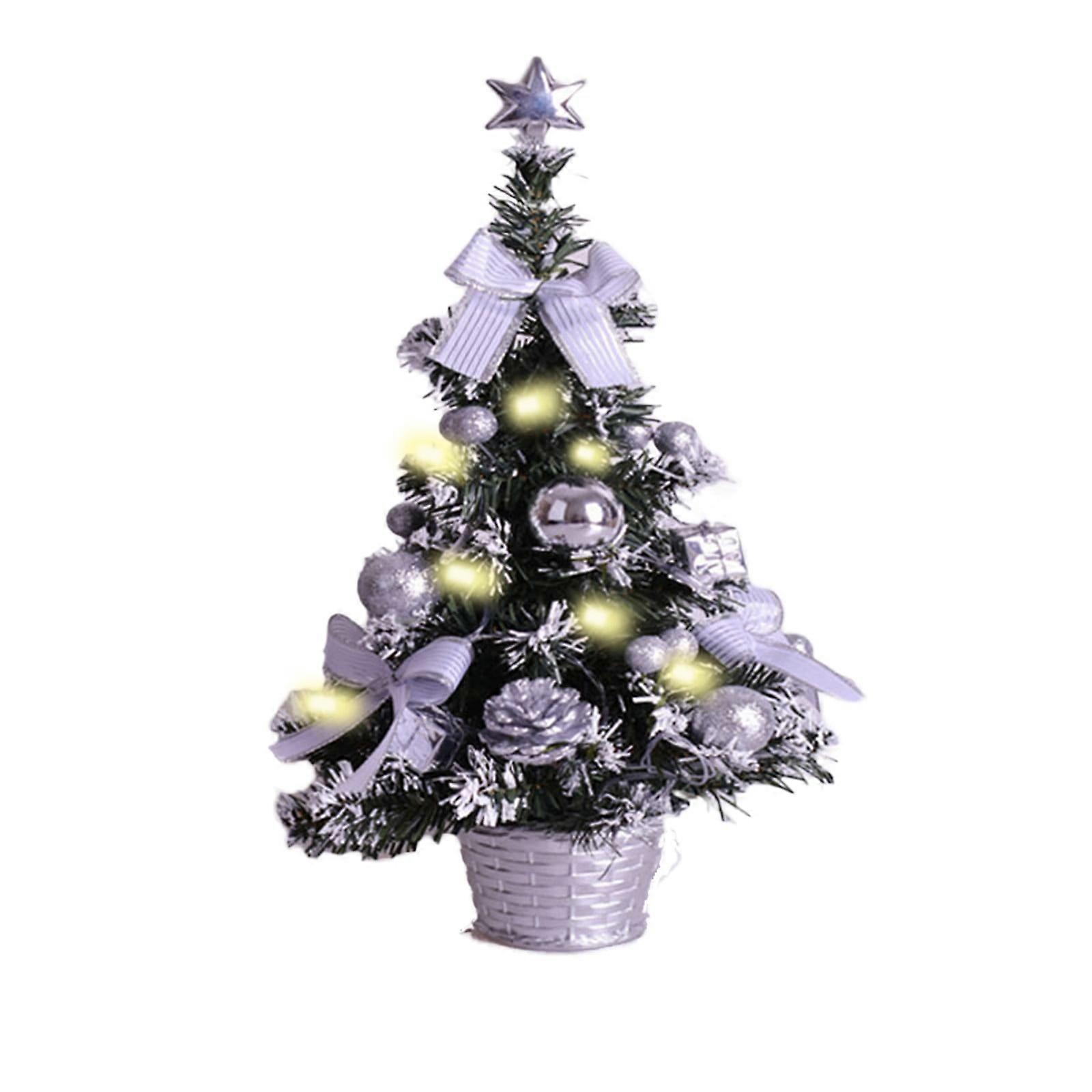 DagobertNiko Clearance! 40cm Pre-lit Artificial Mini Christmas Tree with Lights, Balls, Pinecone, Bow, Pentagrams & Bag Base | Majestic Fir