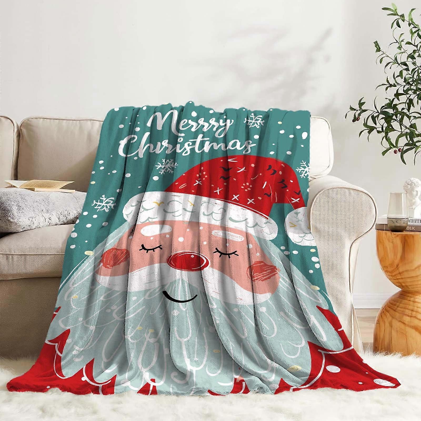 YANHAIGONG Christmas Throw Blanket, Xmas Couch Blanket, Santa Merry Christmas Flannel Blanket for AC Conditioning, Sofa, Bedroom & Office