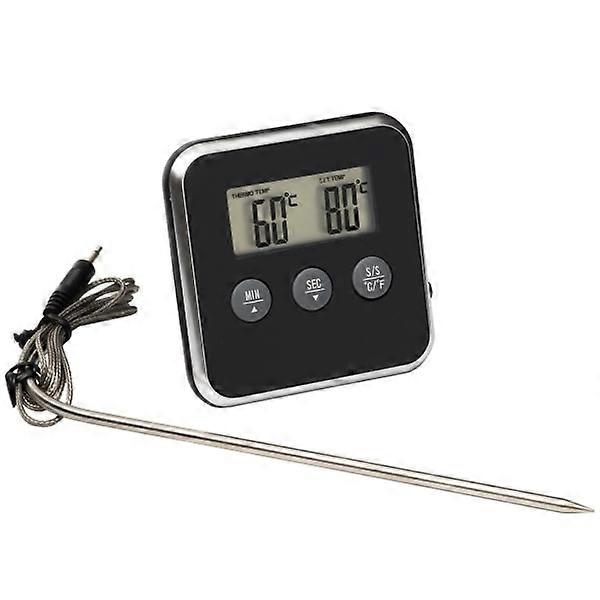 Product description Product description Digital oven thermometer in a compact and stylish design. - Possible to set the desired temperature - Large display shows the preset temperature and the current temperature - Timer function - Handles temperatures between 0°C and 250°C