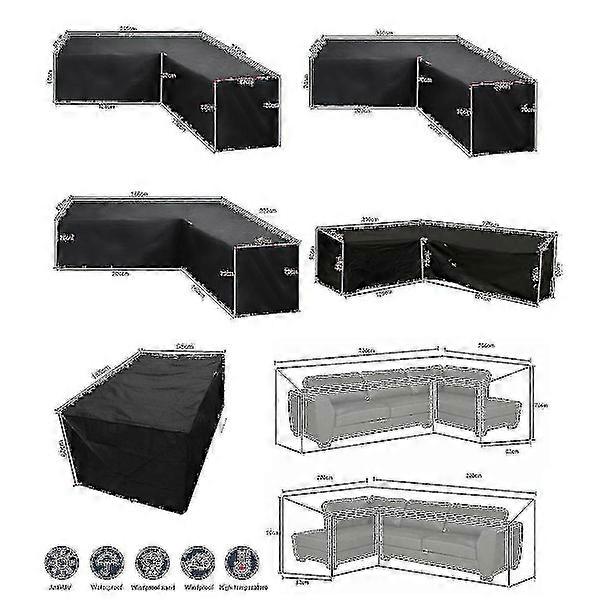 12 Sizes L-Shape All-Weather Cover Waterproof Rattan Corner Furniture Protector Garden Patio Outdoor Sofa Cover Dust Cover-WELLNGS 286*222*82cm
