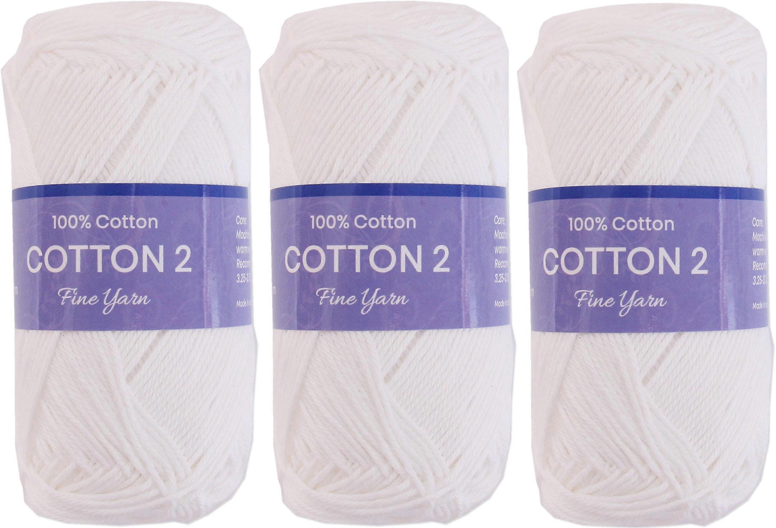 3 Pack Threadart 100% Pure Cotton Crochet Yarn Size 2 | White | 50 gram Skeins | Fine #2 Yarn | 165 yds per Skein