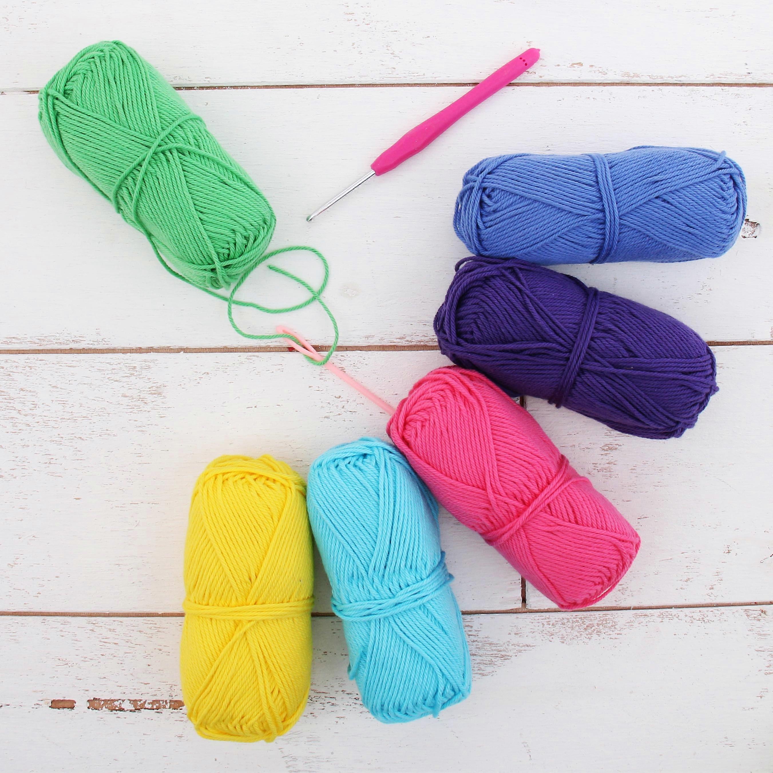 Threadart Crochet 100% Pure Cotton Size 4 Yarn Set | Crayon Colors | Pack of 6 Skeins Each 50 grams | Worsted Medium #4 Yarn | 85 yds per Skein
