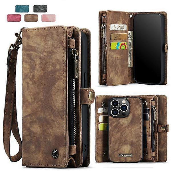 2-in-1 Detachable Wallet Case for compatible with iPhone16, compatible with Samsung, Card Holder, Retro Magnetic Flip Leather Case with Zipper
